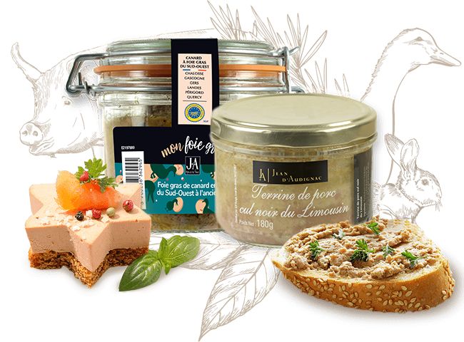 Principalement avec de la viande française, nos foies gras, terrines et pâtés se déclinent de multiple façons pour toutes les occasions.