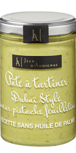 Inspirée des saveurs orientales, cette pâte à tartiner est délicatement aromatisée à la pistache. Le mariage avec la noisette et le biscuit feuilletine, sublime cette recette pour une dégustation tout en douceur. Une expérience gourmande, à la fois onctueuse et raffinée.